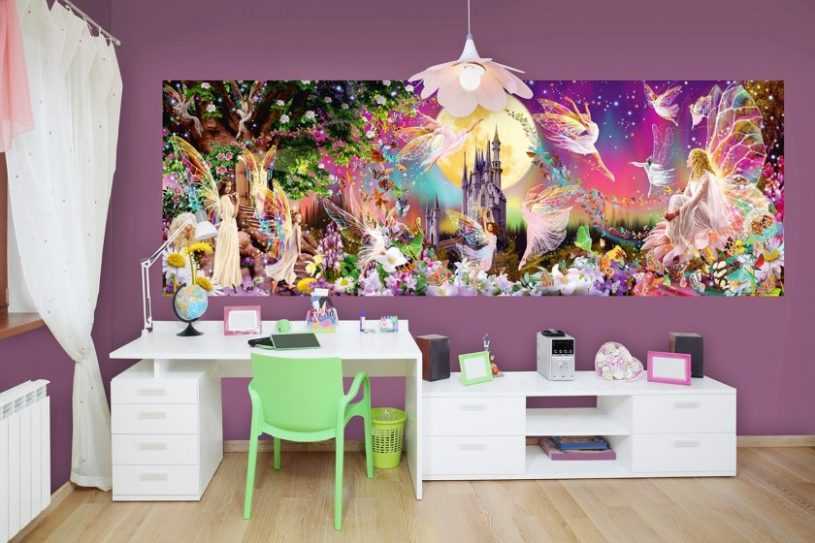Фотообои 3D — размещаются на одной из стен комнаты и выстраивают поистине великолепный 3-мерный мир, одновременно способствуя развитию фантазии и внимания.