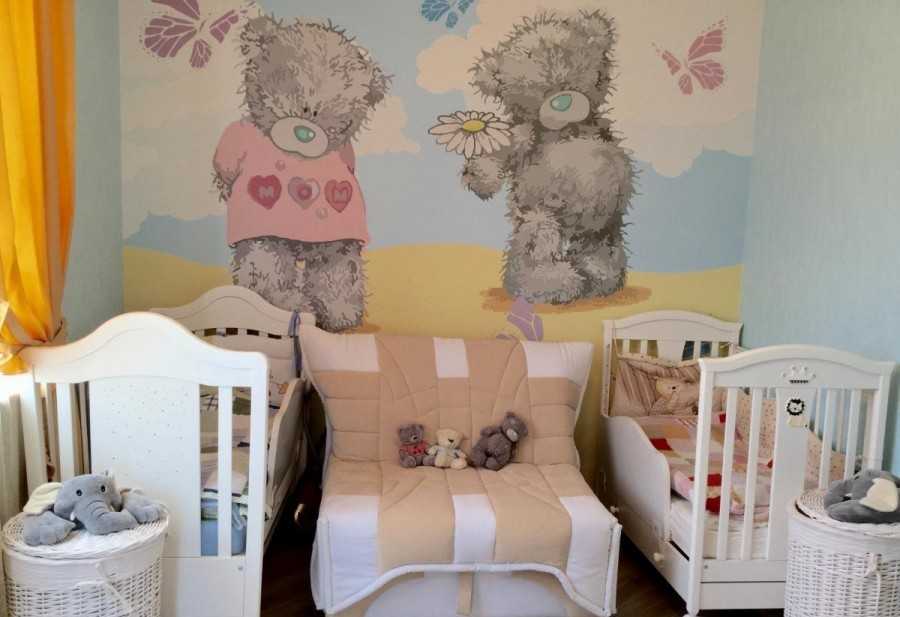 А вот детям в возрасте от одного до двух лет даже рекомендуется любоваться стенами с яркими, сочными рисунками. Однако здесь нужно соблюдать меру и не клеить самые красочные элементы напротив места для сна.