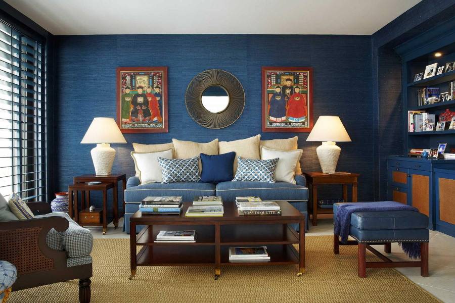 Темные, например, синие обои в интерьере гостиной, способны придать квартире нотки изысканности. Однако стоит учитывать, что это – холодный цвет. Поэтому его следует разбавлять теплыми элементами декора.