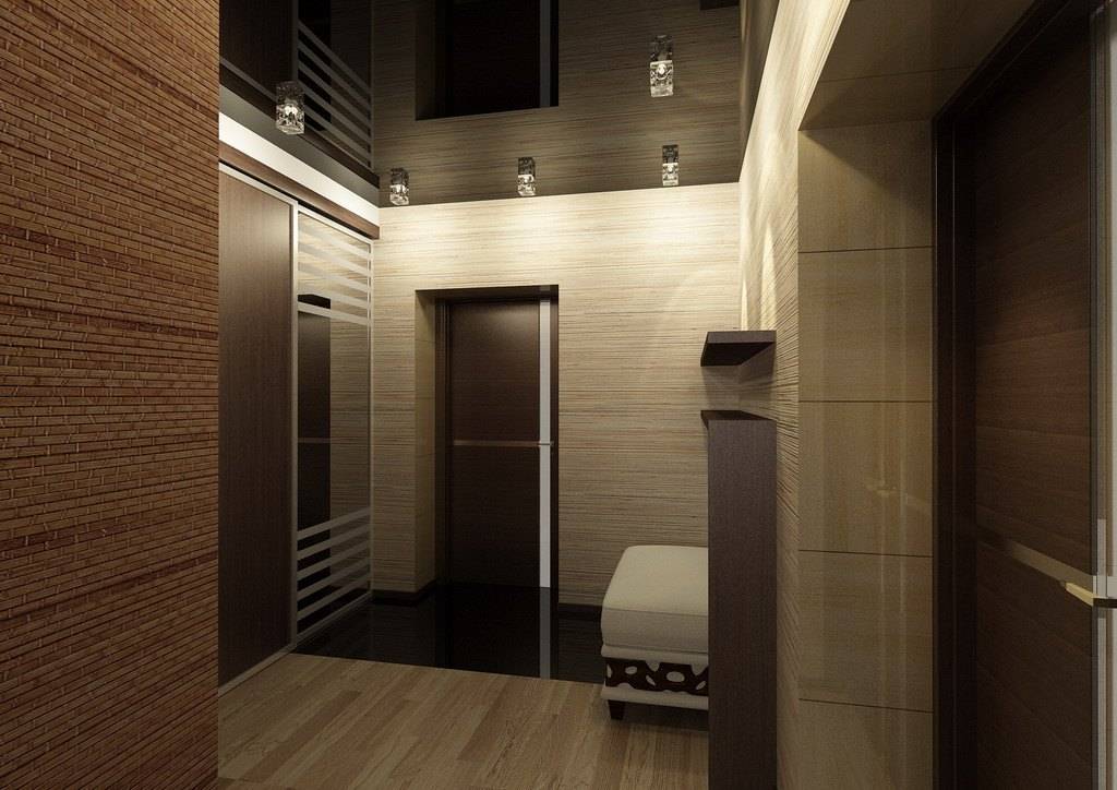 Шикарный интерьер подчеркнут грамотно разработанным освещением, обои в коридоре имитируют декоративную штукатурку
