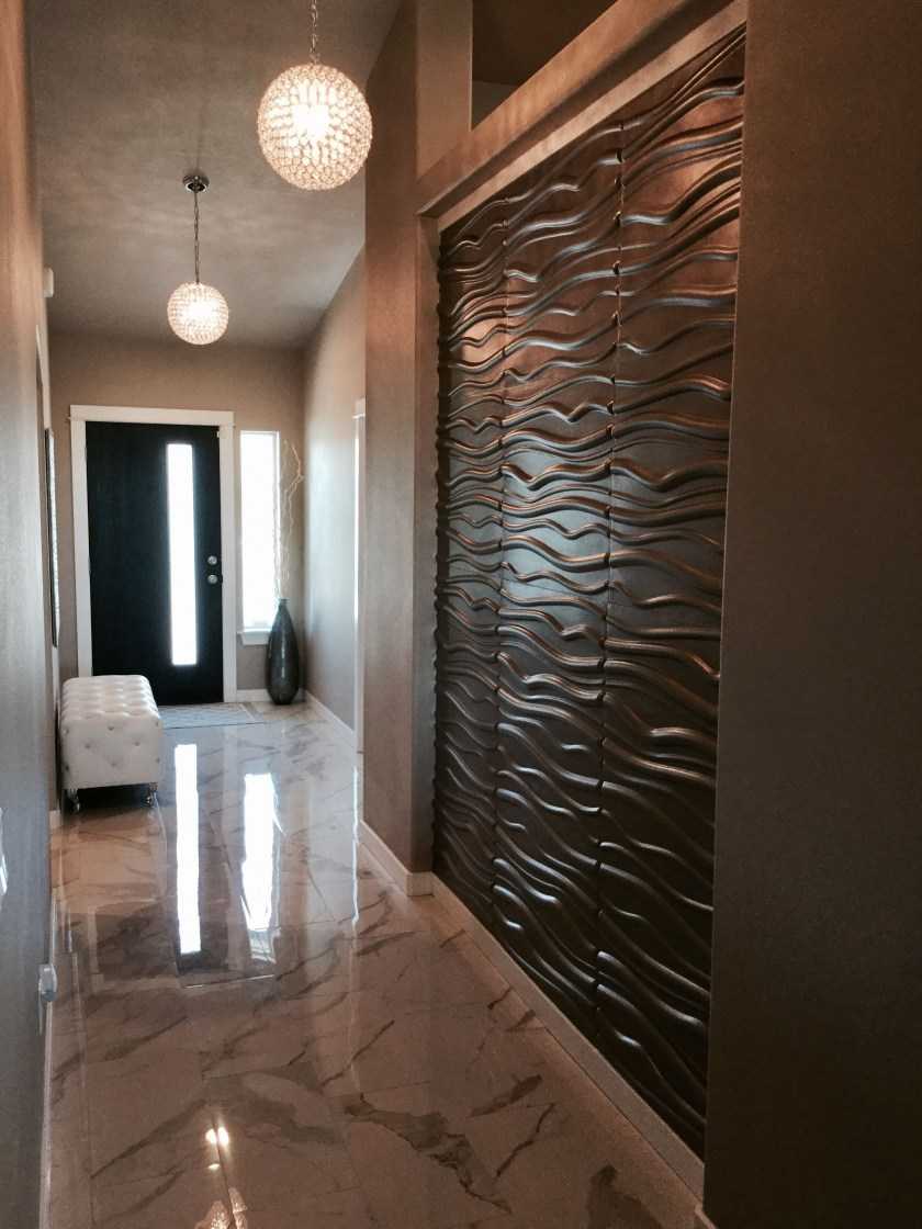 Стильно, красиво, функционально — таково ощущение от этого дизайна прихожей. Декоративная штукатурка на стенах прихожей добавляет практичности не нанося ущерба дизайну.