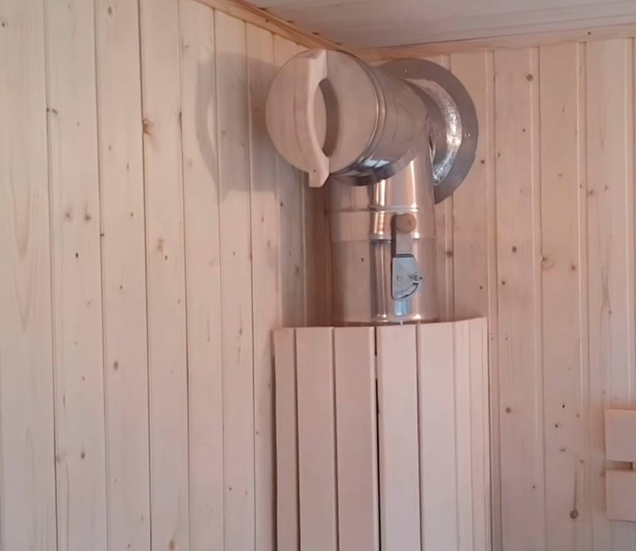 При такой схеме вентиляции парная прогревается быстрее и соответственно экономится топливо.