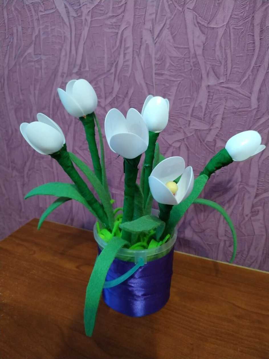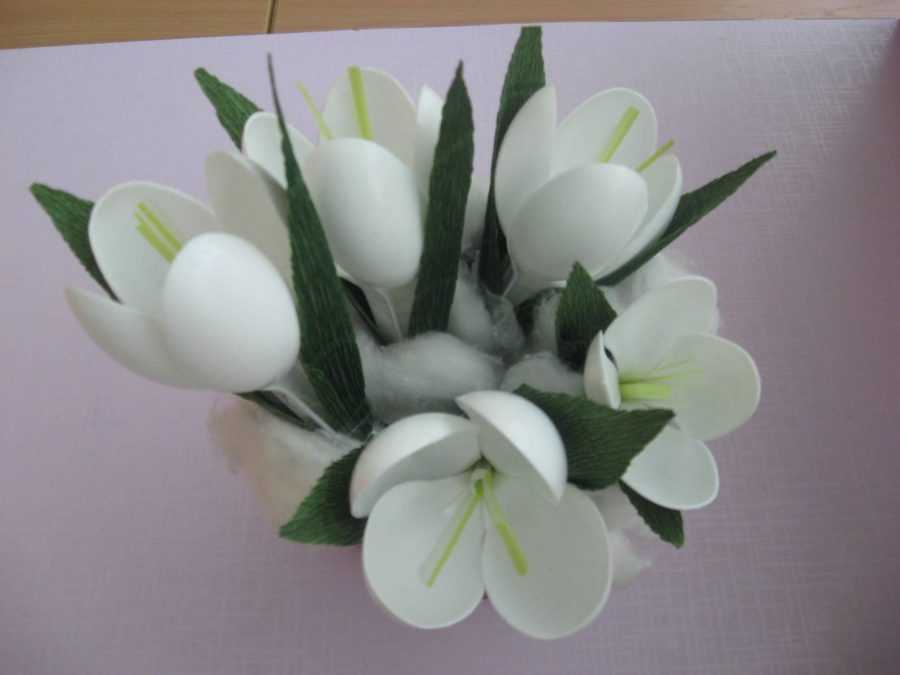 С приходом весны, в преддверии празднования 8 марта, дети традиционно мастерят подарки для своих мам. Конечно, это всевозможные цветы. Оригинальные крокусы или ландыши можно изготовить из пластиковых ложек. Такую весеннюю поделку в садик папа с сыном легко изготовят своими руками.