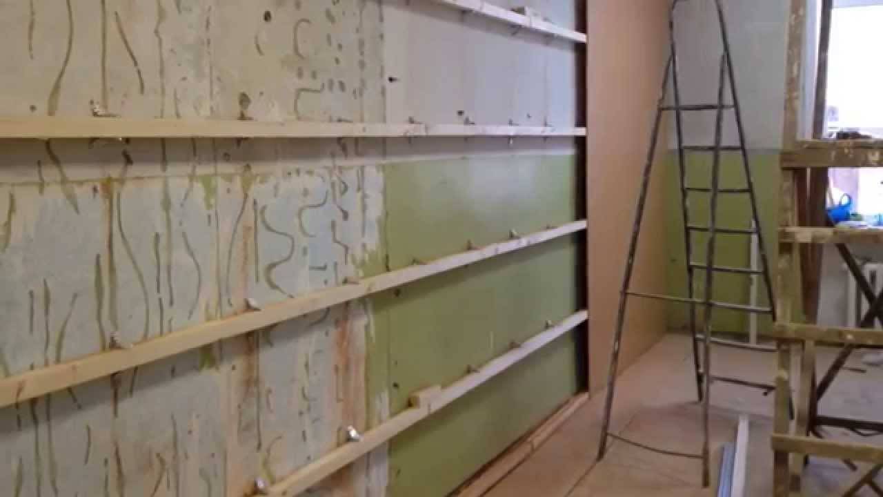 Если стены имеют очевидные неровности, потребуется сборка обрешетки. Для этого можно использовать деревянные рейки или металлический профиль. Учтите, что в кирпичном доме или в условиях повышенной влажности помещения, крепление панели на деревянный каркас крайне нежелательно. Это может привести к размножению грибка и плесени. При креплении на обрешетку обдирать стены от отделки считается необязательным.