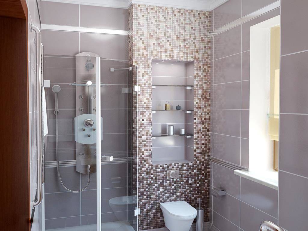 Для оригинальности интерьера ванной и существенной экономии бюджета, можно использовать различные виды плитки, комбинируя их в соответствии с цветовой палитрой.