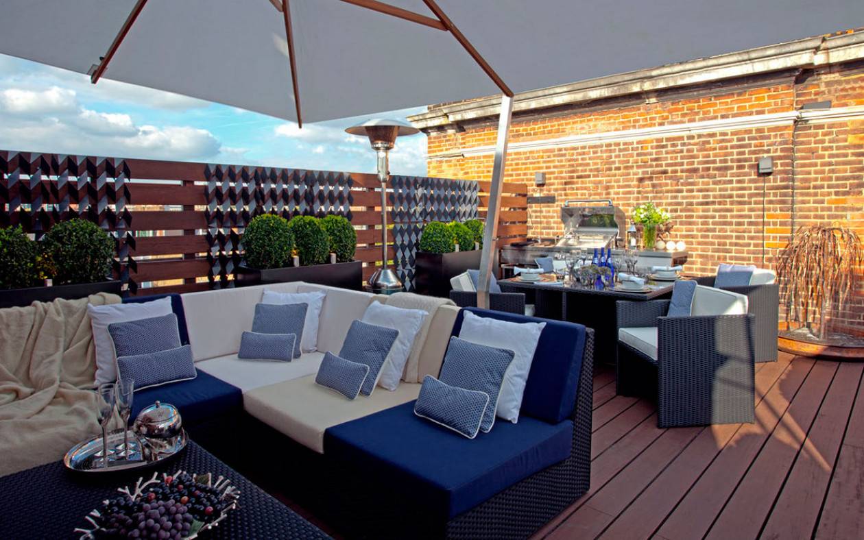 - Специальная состаренная плитка подходит для частичной облицовки стены и отделки перекрытий террасы. Особенно ее применение уместно во влажных зонах веранды или чердака.
