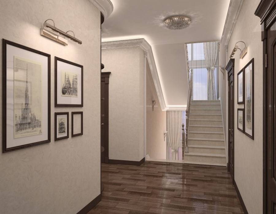- Для таких помещений подходят обои с шелкографией во всю стену. Такое украшение стоит обрамить молдингом.