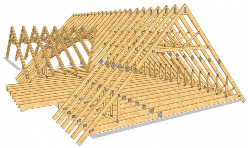 - Желательно устройство внешней стропильной системы вместо обычных стенок и перекрытий в частном здании или на даче.