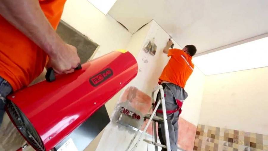 Прогреваем комнату. Это заключительный этап подготовительных работ – помещение, в котором предполагается установка натяжного потолка, должно быть прогрето до 40-50 градусов
