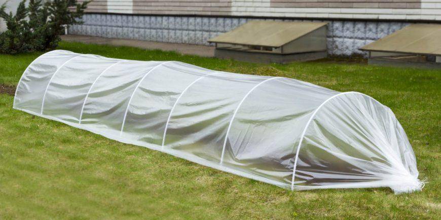Когда каркас из подходящего материала собран, следует переходить к следующему этапу – обтягиванию пленкой. Желательно использовать плотную пленку толщиной в 20-30 микрометра. Да, она стоит дороже и для её установки потребуется скотч. Зато она достаточно плотная, чтобы выдержать мощные порывы ветра. Но также можно взять стрейч-пленку. Несмотря на небольшую толщину, она плохо рвется и один слой прекрасно липнет к другому, что зачастую позволяет обходиться без скотча.