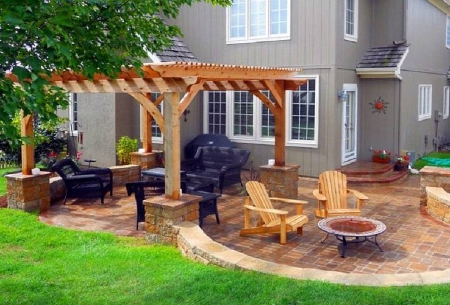 Для любителей понежиться в тенечке над патио можно соорудить навес из любых подручных материалов или вьющихся растений. Хотя, конечно, это не является обязательным условием – кому-то может быть больше по нраву открытый участок, залитый солнцем.