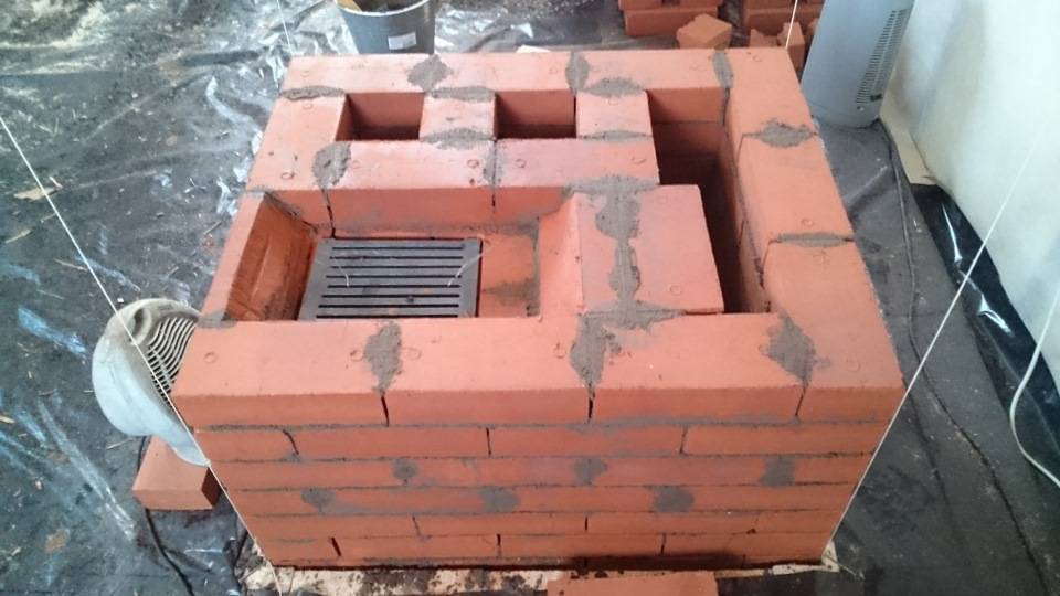 Кладка печи проводится по установленному алгоритму. Процесс выглядит следующим образом: