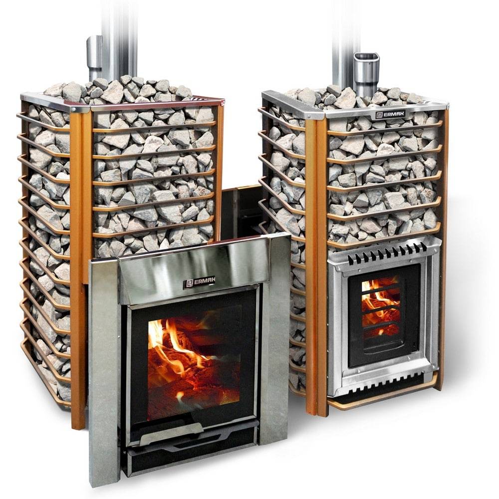 Компания «Ермак-Термо» предлагает использовать ее печи Ермак 20 и Ермак 24, мощностью 20-24 кВт, на дровяном и брикетном топливе, и Уралочка 20 на газу. По отзывам владельцев, печь Ермак 24 идеально подходит для загородного дома с пристроенной баней, тогда как 20-ю модель лучше всего ставить в обособленном помещении сауны или парилки.
