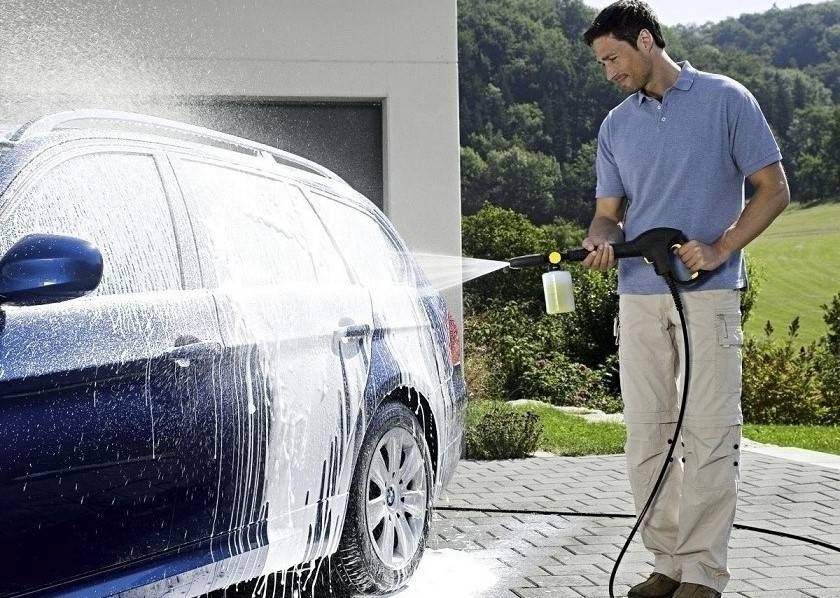 В гаражных условиях лучше использовать пенокомплект – вариация оборудования для бесконтактной мойки авто.