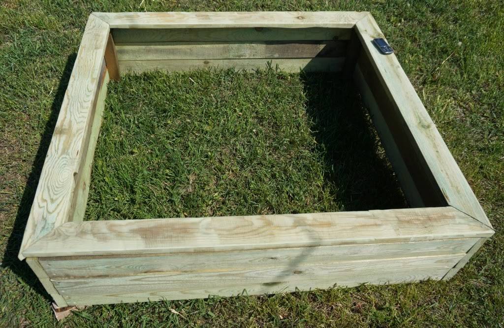 Закупились 6 метровые доски толщиной 25 мм и шириной 100 мм. Они пилились ровно по 1.5. метра на 4 части. То есть из одной доски получался целый квадратный ряд. На фото видно, что таких рядов сделано было 3 штуки, в итоге песочница получилась высоту 30 см.