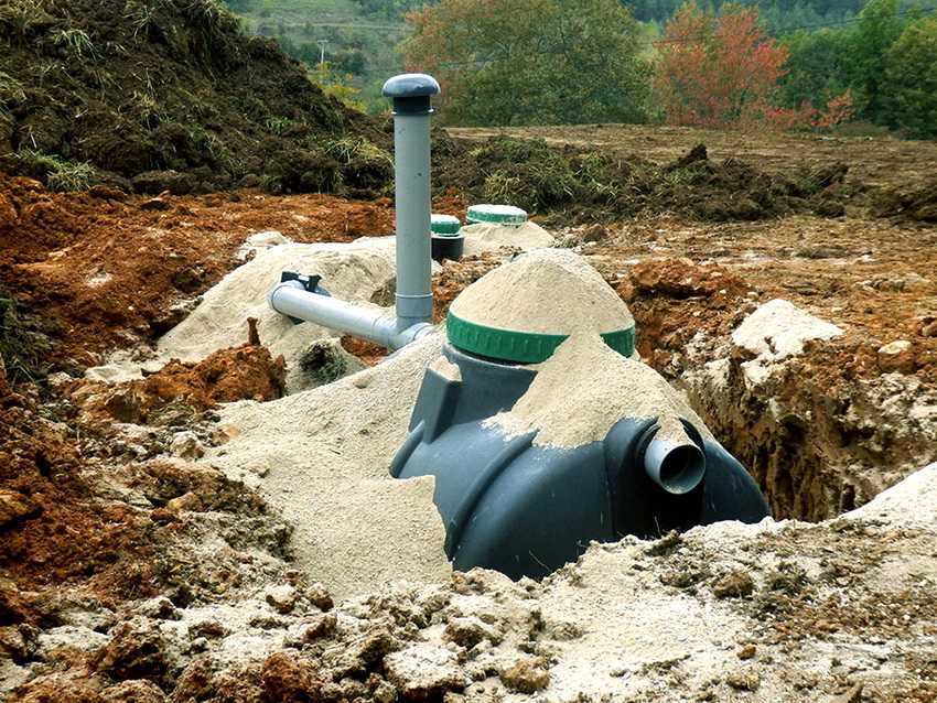 При использовании колец в качестве основы для септика, их необходимо дополнительно герметизировать. Для этого внешний диаметр углубления в земле раскапывают побольше, производят монтаж септика, после чего снаружи обмазывают битумом.