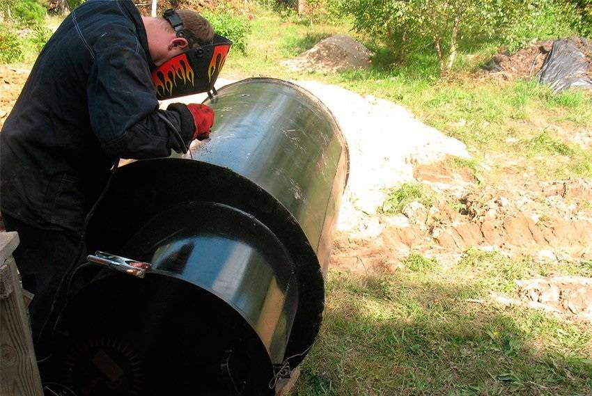 Если вы сможете недорого приобрести трубу диаметром 1–1,5 м нужной длины, она послужит отличной основой создания цилиндрического кессона. Самостоятельно из листов проще сварить резервуар с квадратным основанием.