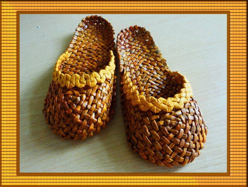 Среди других интересных идей следует выделить плетеные шляпы из газеты. Если выбрать подходящий цвет, то изделие получится очень похожим на соломенную шляпку. Для декора помещения, к примеру, прихожей, можно сплести лапти.