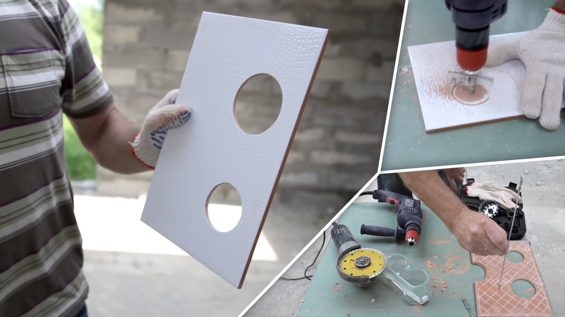 Укладка кафелем пола в бане предусматривает наличие уклона в сторону слива. Для ориентира мастера используют либо строительный уровень, либо леску, либо брусок с нужным уклоном. Его кладут на плитку, а уже поверх него измеряют строительным уровнем. Плитку режут специальным инструментом — плиткорезом, отверстия под слив срезают при помощи дрели с корончатым сверлом.