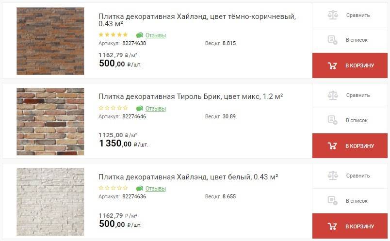Если есть желание в качестве облицовочного материала использовать натуральный камень, то в каталоге Леруа Мерлен можно выбрать из таких вариантов: