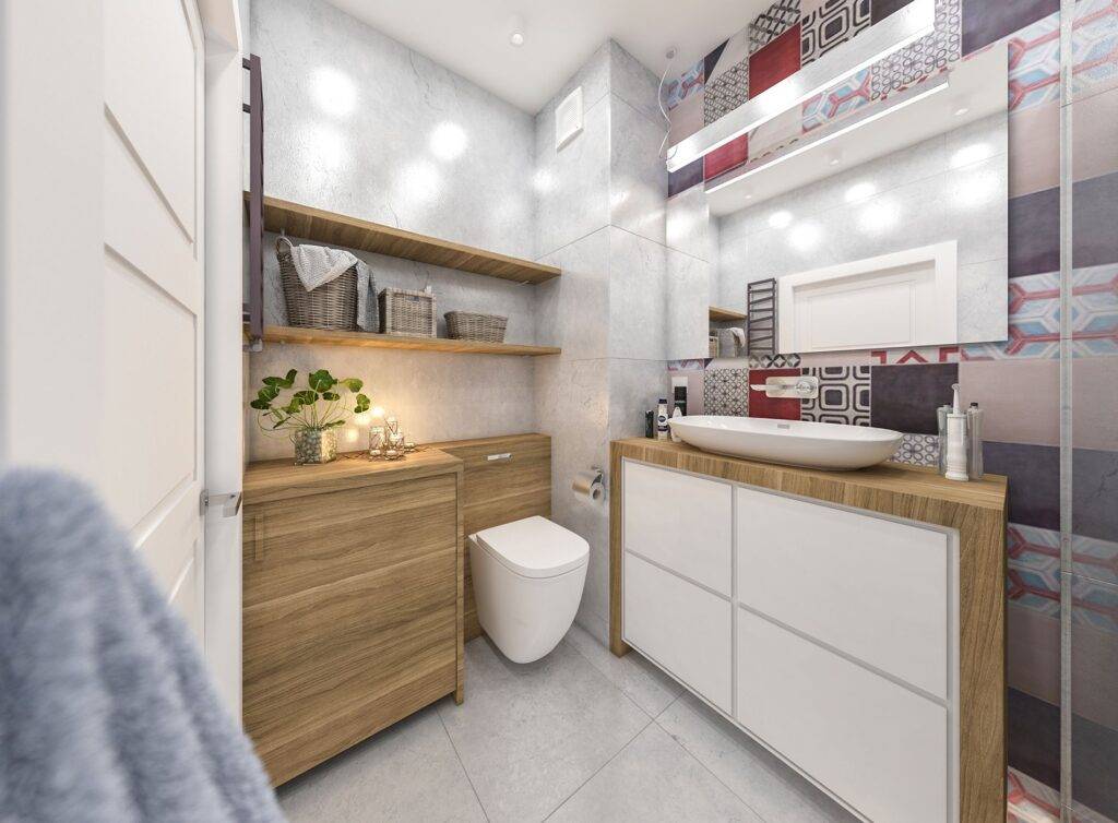 Сейчас «калейдоскоп» используется с плиткой не только разных цветов, но и узоров. Получается отсылка к стилю «пэтчворк».