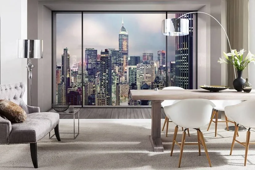 Фальш окно в гостиной расширяет пространство, имитация ночного Манхеттена придает комнате современности, теперь любоваться любимым городом можно часами напролет Источник yandex.ru