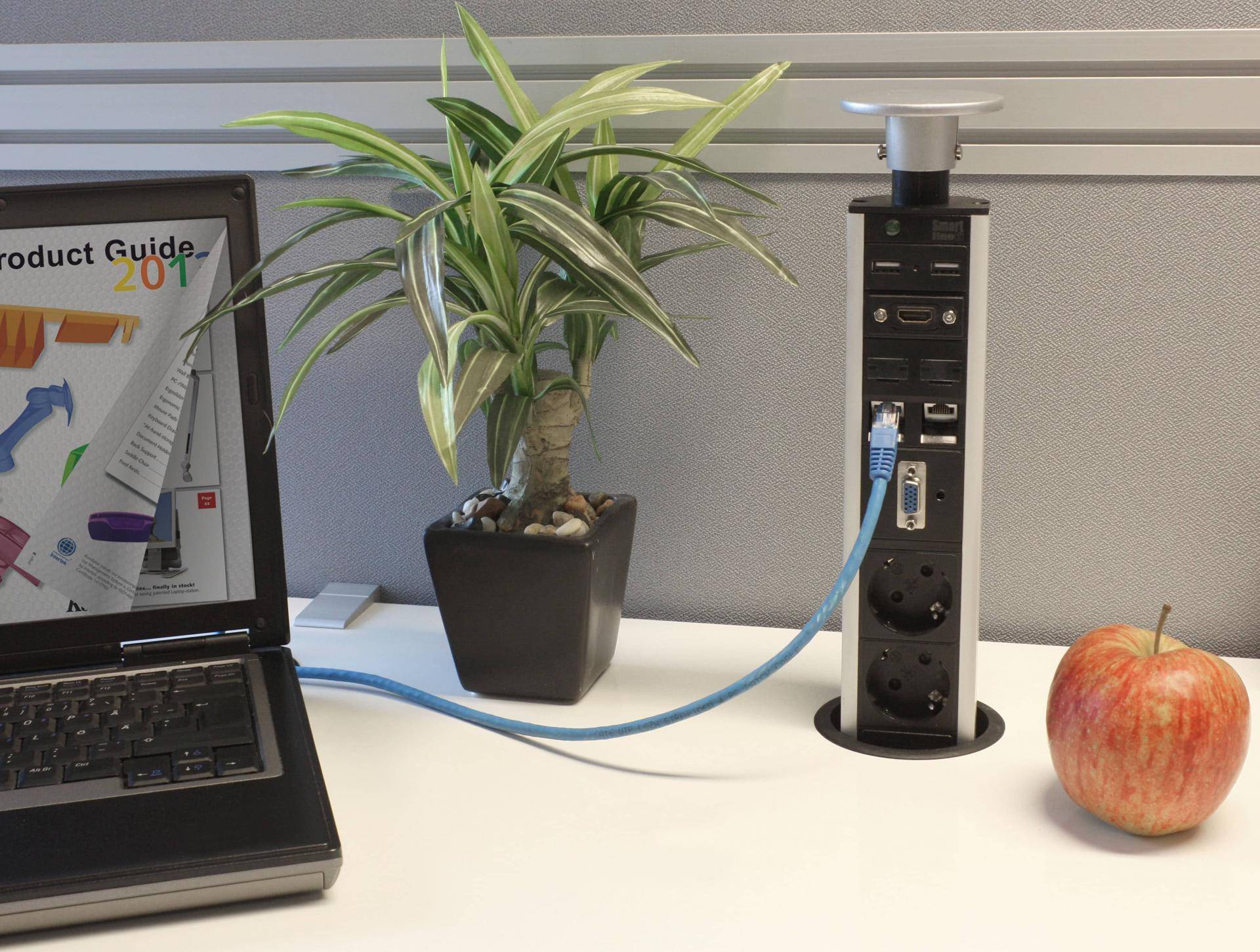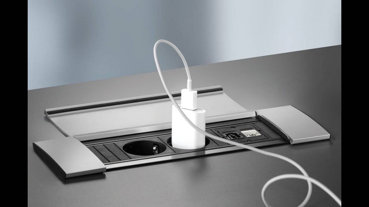- в столешнице рабочего кухонного стола: сюда подойдёт блок на 3–5 силовых розеток;