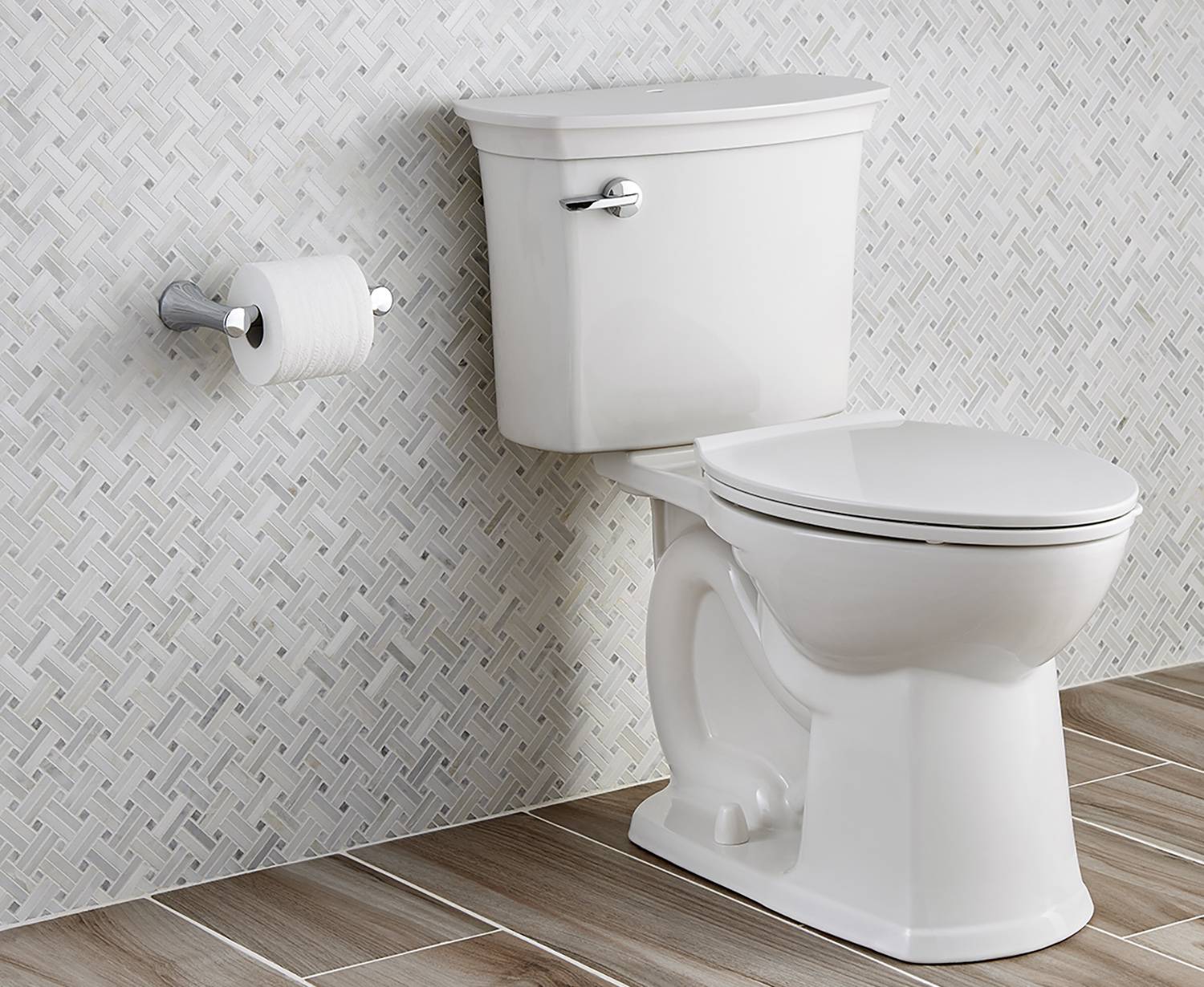 Форма чаши остается традиционной, однако здесь нет привычной ножки. Благодаря этому плитку можно укладывать непосредственно под самим унитазом.