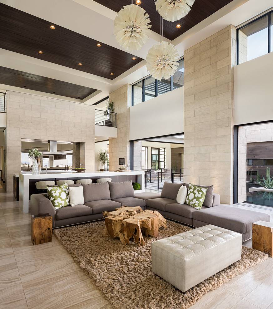 В целом, такие сложные потолочные конструкции широко используются исключительно в просторных частных домах, где гостиная – это огромный зал с достаточным запасом квадратных метров, нуждающийся в тщательном дизайнерском планировании и правильном зонировании разных участков. В формате городской квартиры проекты с использованием более чем 2 уровней практически не используются.