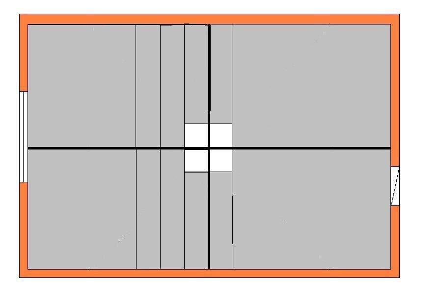 Точка пересечения этих четырех линий и есть нашим искомым центром. Конечно, идеального совпадения двух пересечений в наших типовых квартирах практически не бывает, поэтому диагонали можно несколько сместить.
