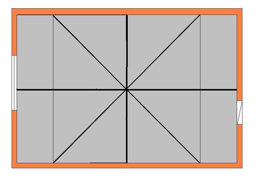 - Определяем точный центра потолка. Для этого проведите диагонали от углов комнаты по всему потолку.