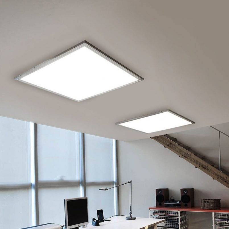 Чаще всего светодиодные панели используют в офисах, хотя некоторые владельцы частных домов устанавливают их в служебных помещениях. Выгода от них большая. К примеру, один такой плафон выделяет 5500 люмен. Это соответствует потоку света, выделяемого лампой накаливания мощностью 500 Вт. Сам же этот плоский квадратный светильник потребляет всего лишь 75 Вт.