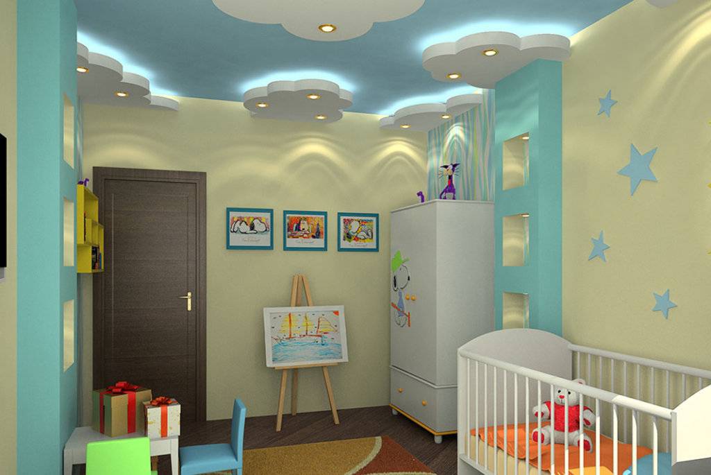 Цветовая гамма потолочного покрытия должна быть согласована с ребенком