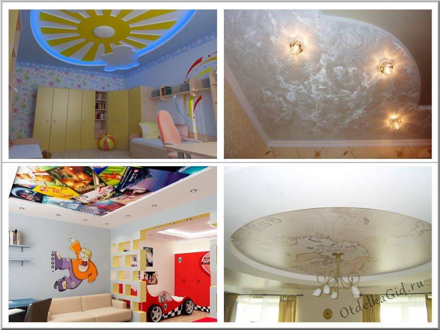 Очень популярен на сегодняшний день потолок из гипсокартона, оформленный в виде имитации звёздного неба. Он выполняет как эстетическую, так и развивающую функцию. Разные варианты оформления из гипсокартона обычно располагают на галерее фото специализированных сайтов.