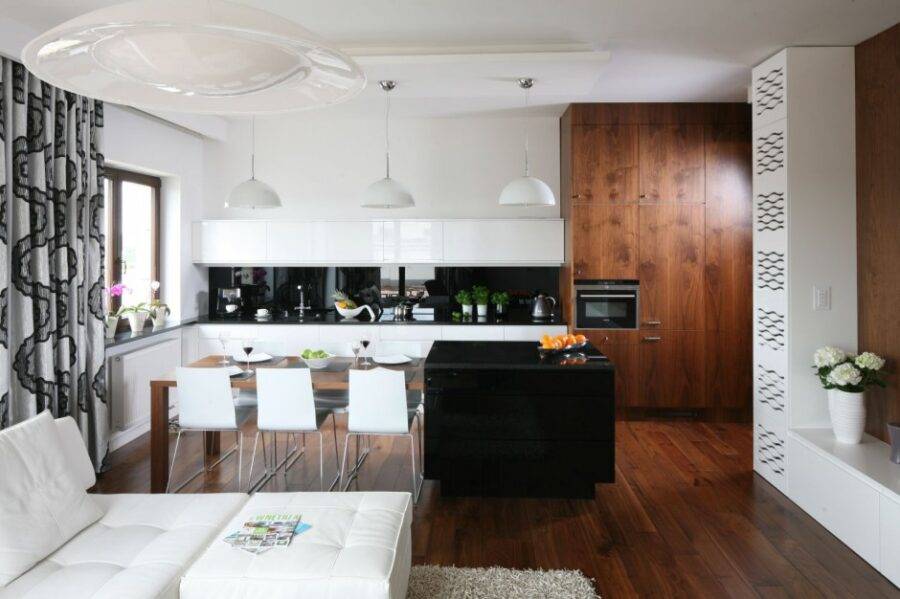 Дизайн гостиной совмещенной с кухней