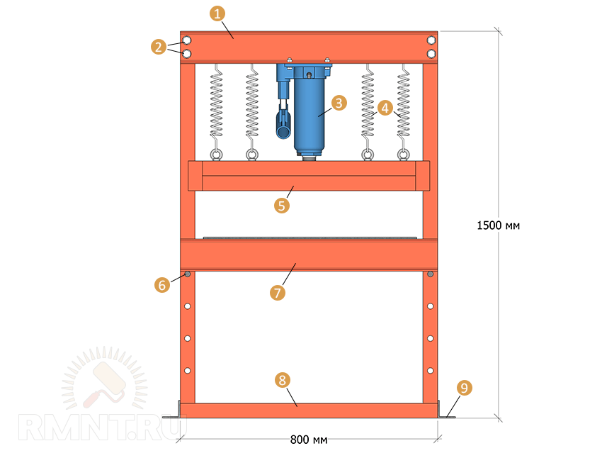 Пресс из домкрата собственными руками: этапы работ по монтажу