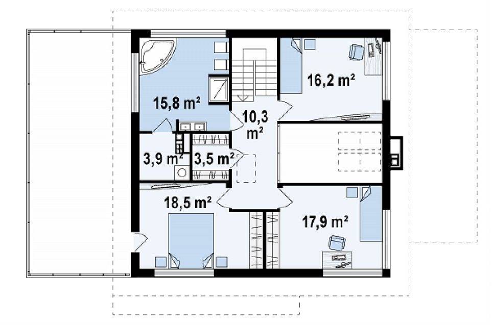 - спальни, расположенные на втором этаже – их может быть три;