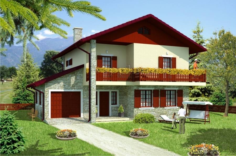 Внимания заслуживает проект дома с мансардой (фото это наглядно отображают), где гараж покрывает плоская крыша, которая является основанием террасы. Эстетичность и элегантность конструкции достигается умелым комбинированием отделочных материалов. Для большой семьи придется по душе просторный коттедж с мансардой, увенчанной ломаной крышей, что обеспечивает максимальное целевое использование мансардного этажа.
