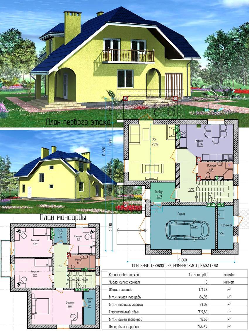 Варианты проектов одноэтажных домов с мансардой и гаражом