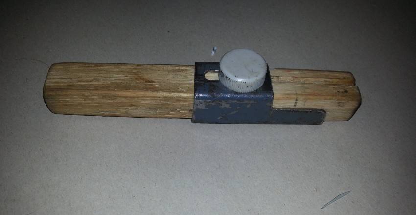 Кроме бруска или стола потребуется два болта, две гайки, лезвие от ножа канцелярского и несколько шайб под гайки. Так же пригодится дрель для проделывания отверстий под болты.