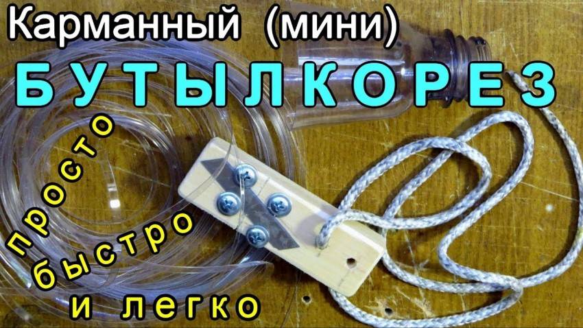 В результате получается незамысловатый станок для нарезания ленты из ПЭТ-бутылок. С принципом действия бутылкореза можно ознакомиться, посмотрев видео.