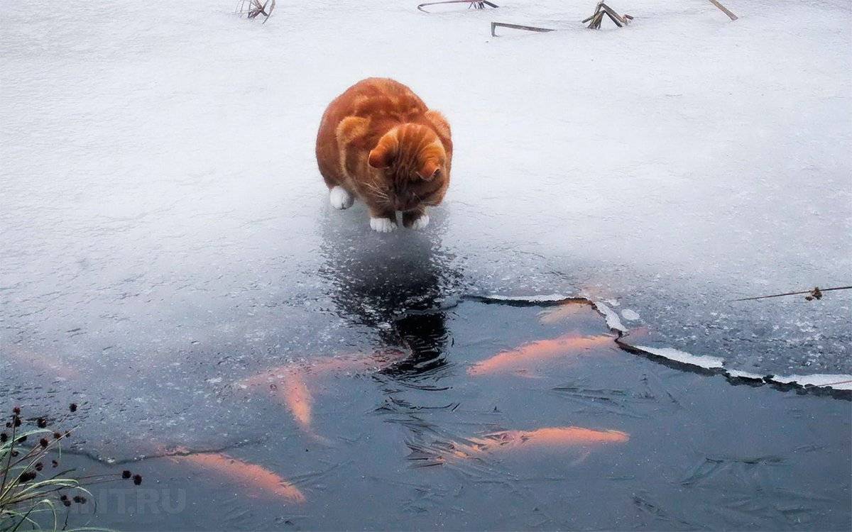 Главную опасность для водной фауны в районах, подверженных частым заморозкам, представляет лёд. Ледовый панцирь, устойчиво перекрывающий водоём более суток, приведёт к скоплению ядовитых газов, образованных разлагающимися остатками растительности и как следствие — частичной или полной гибелью рыбы. Необходимо, чтобы часть пруда всегда была свободна ото льда, лучшим решением будет специальный небольшой нагреватель. Не стоит пытаться взломать лед с использованием силы — удары по ледяному панцирю могут оглушить и даже убить рыбу.