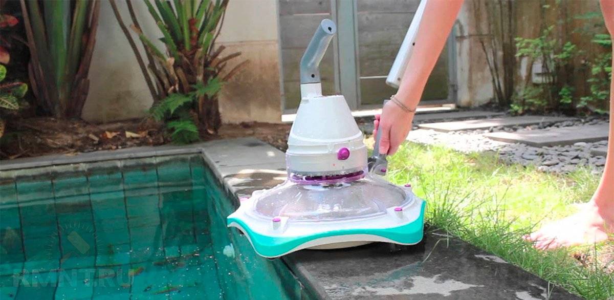 Для чистки дна пригодиться донный пылесос — его конструкция напоминает обычный, но в ней отсутствует фильтр. Вода со дна пруда засасывается внутрь аппарата, по мере заполнения камеры прибор автоматически отключается и ёмкость с грязью нужно опорожнить в дренажную систему.
