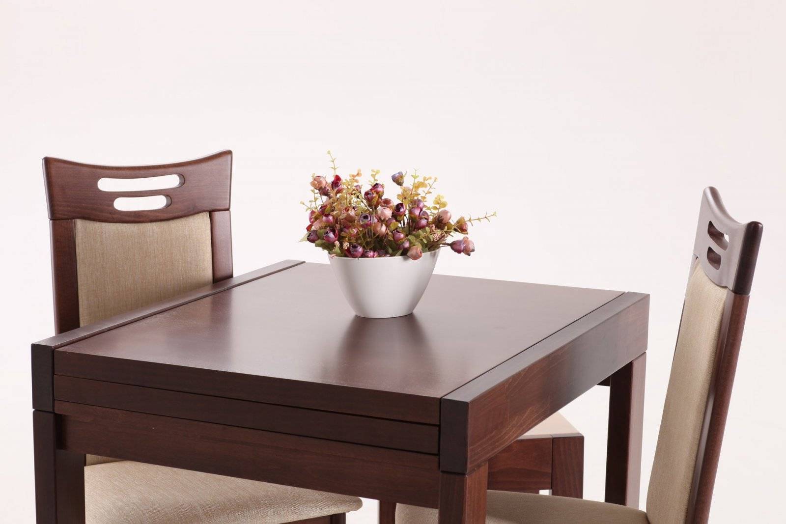 Универсальная модель позволяет сэкономить пространство кухни. Такая мебель считается уникальной для любой зоны. Средние размеры квадратных столов — 90х60 см. Модели шириной более 90 см смотрятся массивно и занимают много места.