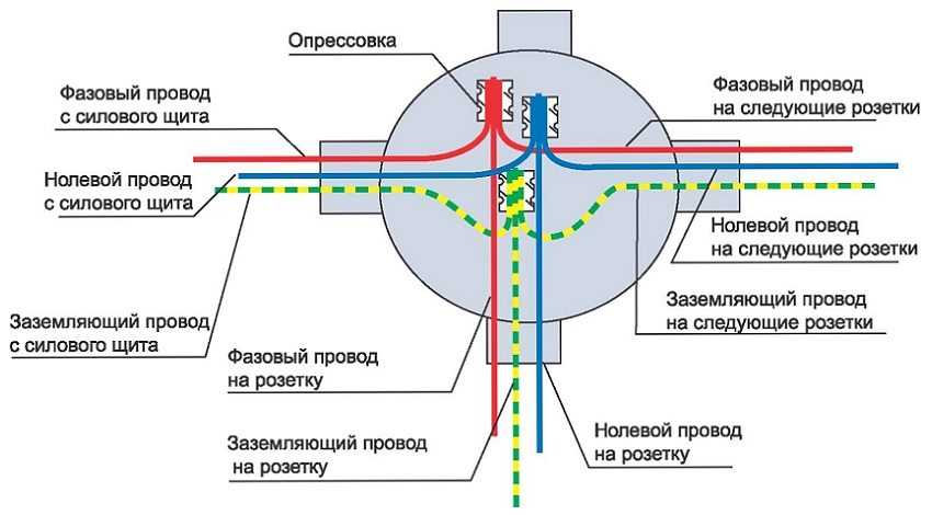 Правилами предусмотрено соединение проводов внутри монтажных коробок. Коробки устанавливаются в местах, где будут отводы от основного кабеля.