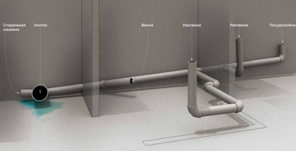 Разводка труб канализации должна иметь соответствующие уклоны, что позволит исключить образование засоров в трубопроводе.