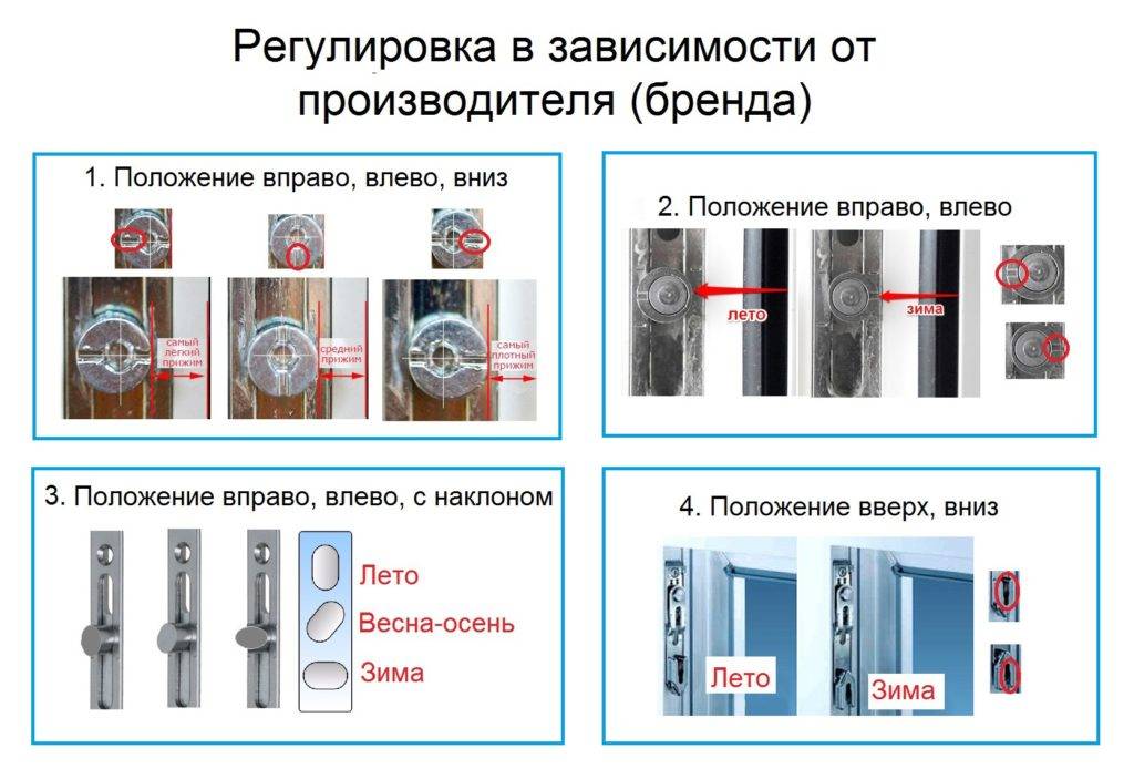 У различных механизмов пластиковых окон регулировка может немного отличаться, поскольку отличается количество эксцентриков, а также их конфигурация.
