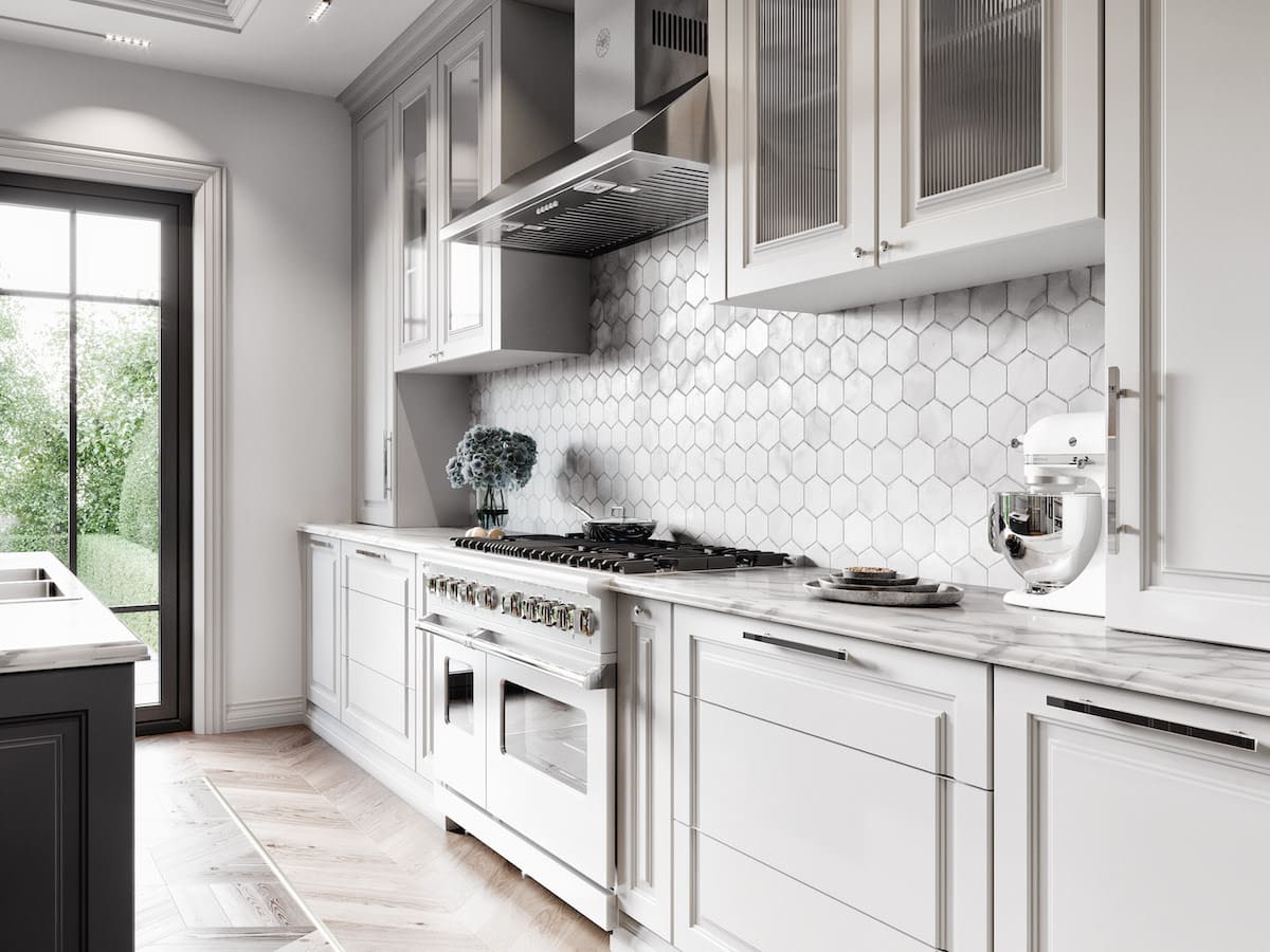 Здесь главное не экономить на отделке и мебели, чтобы белоснежная кухня такой и оставалась. А еще поэкспериментируй с оттенками – от стерильного синеватого до уютного молочного.