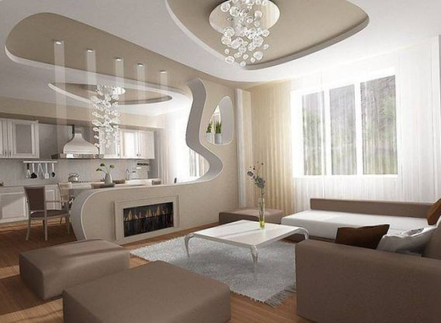 Как известно, разноуровневые потолки отнимают 20-30 см полезного объема, а уж в квартирах со стандартными потолками так и вообще будут смотреться не очень уместно. Особенно, если пытаться «соорудить» такой потолок в центре комнаты и крепить к нему огромную люстру. Согласитесь, что это нагромождение оказывает давящее воздействие.