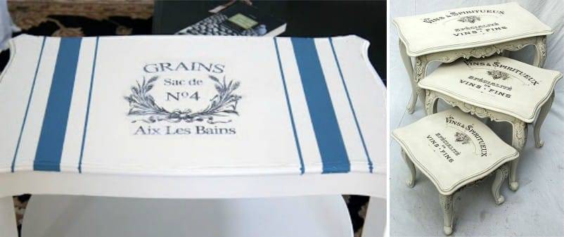 Техника декупаж прекрасно подходит для реставрирования старой мебели. В продаже имеется огромное количество разнообразных салфеток и аппликаций для декупажа. С помощью этой технологии можно украшать не только столешницу стола, но и боковые части и даже ножки.